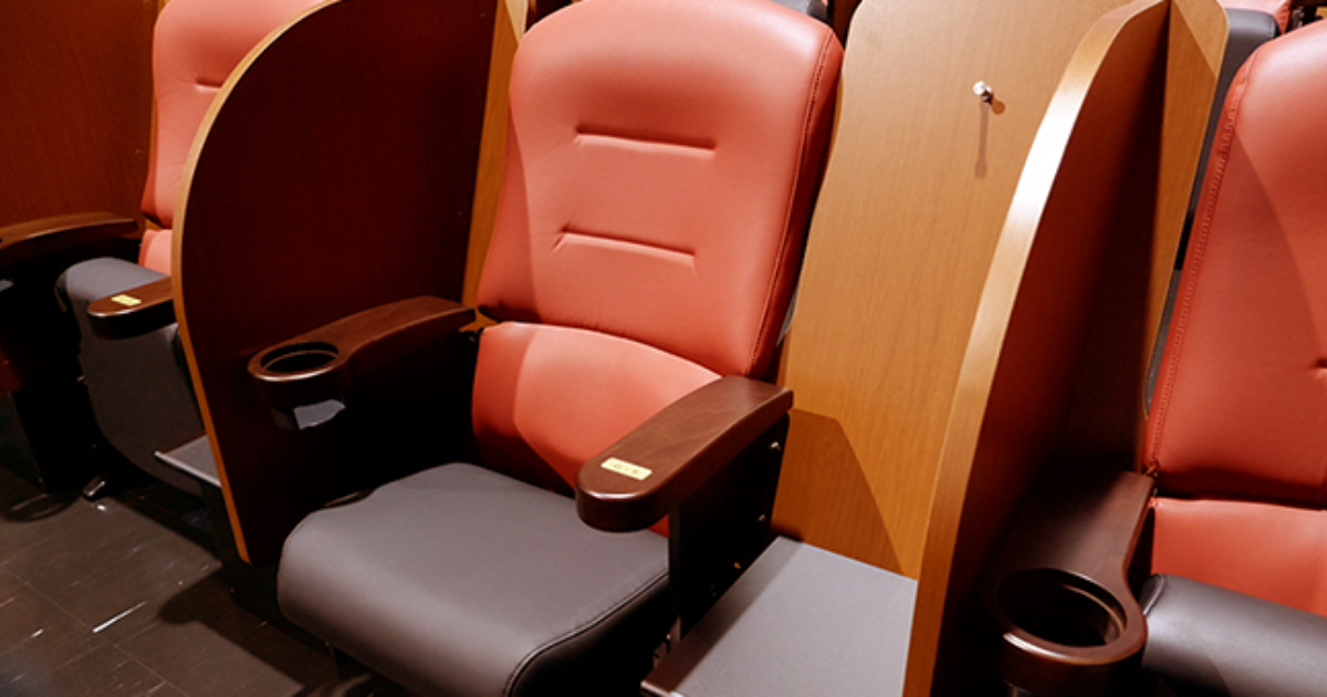 T・ジョイ博多はプレミアムシートがしっかり区切られていて、プライベートな空間で迫力ある鑑賞体験を味わえます。また、シートは高級感あふれる木目調で革張りの座面になっています。