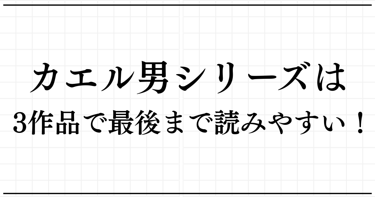そこで今回はカエル男シリーズの読む順番を丁寧に解説していきます。この記事を読めばカエル男シリーズを目的に合わせて最大限に楽しめるので、ぜひ最後までご覧ください。